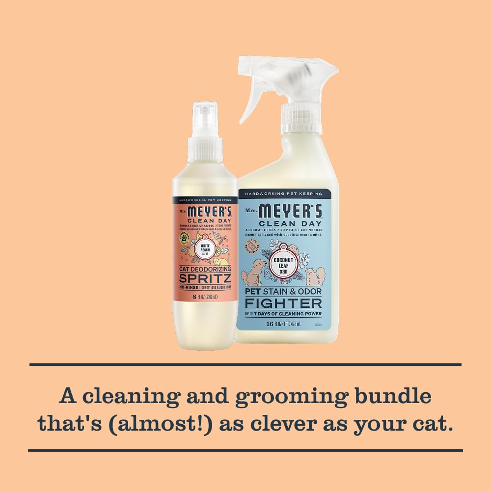 Mrs. MEYER'S Clean Day Cat Care Kit, includes Cat Deodorizing Spritz - White Peach and Pet Stain & Odor Fighter - Coconut Leaf