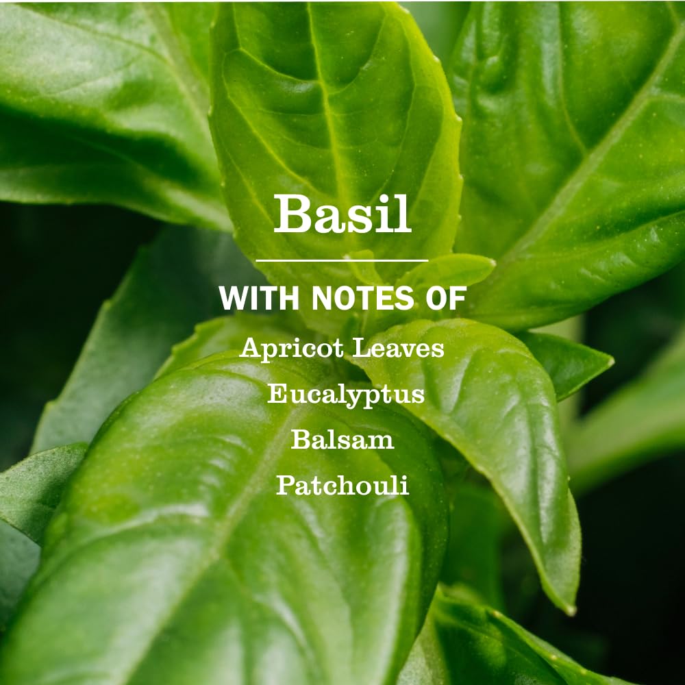 - GARDEN-INSPIRED SCENTS: Basil has a cool, crisp scent that is uplifting and grounding, familiar and exotic—all at one time. Such an inviting herbal smell, the garden’s friendly boost of green. With scent notes of: apricot leaves, eucalyptus, balsam, and patchouli.